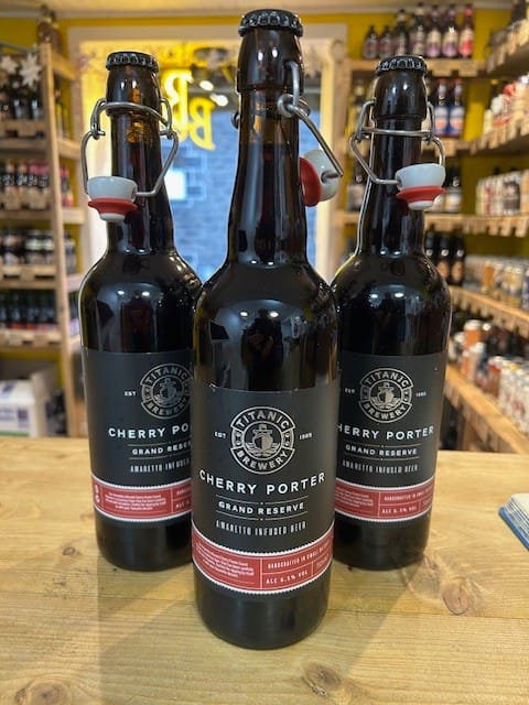 Amaretto infused Cherry Porter, grand reserve. Rich and warming. 750ml bottle 6.5%